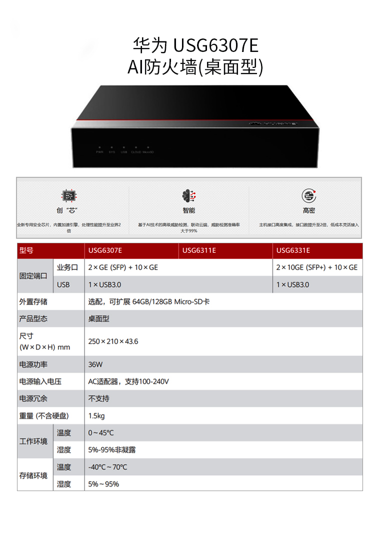 USG6307E交流主機(jī)(10*GE RJ45+2*GE SFP,含SSL VPN 100用戶)