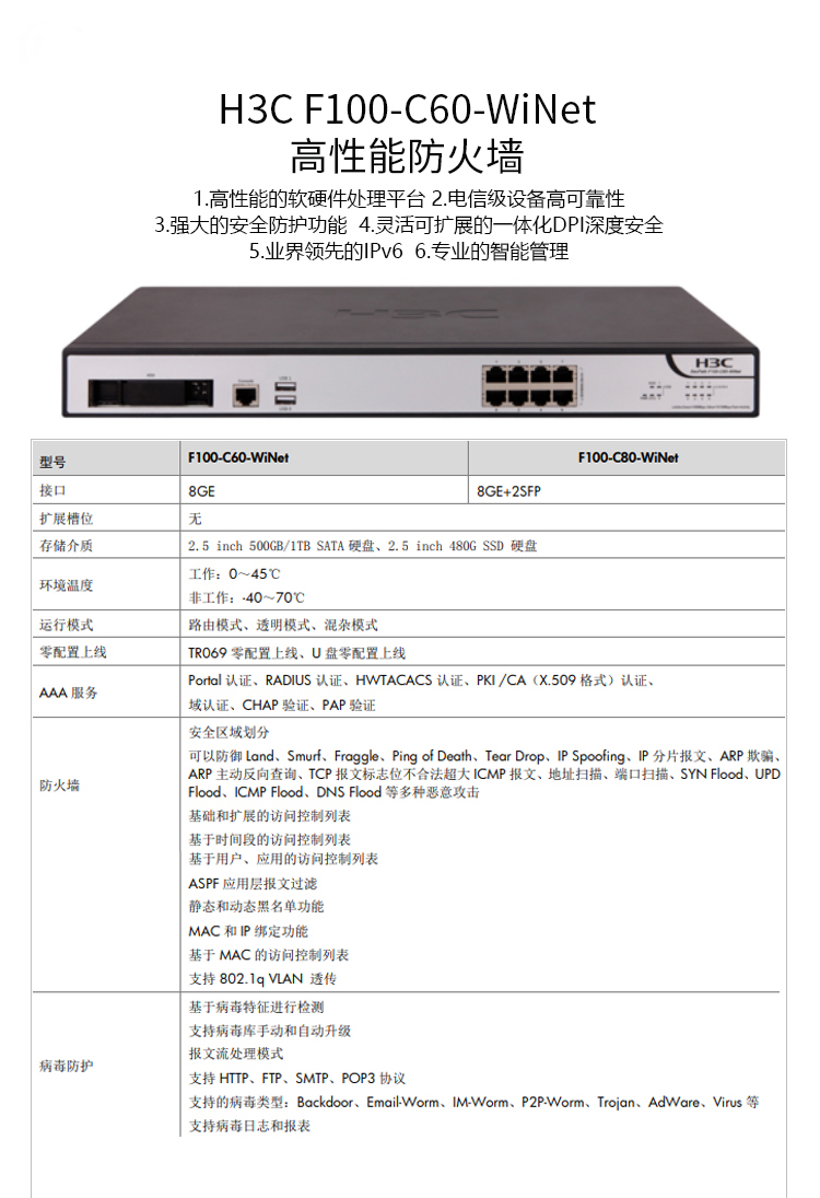 H3C防火墻F100-C60-WINET
